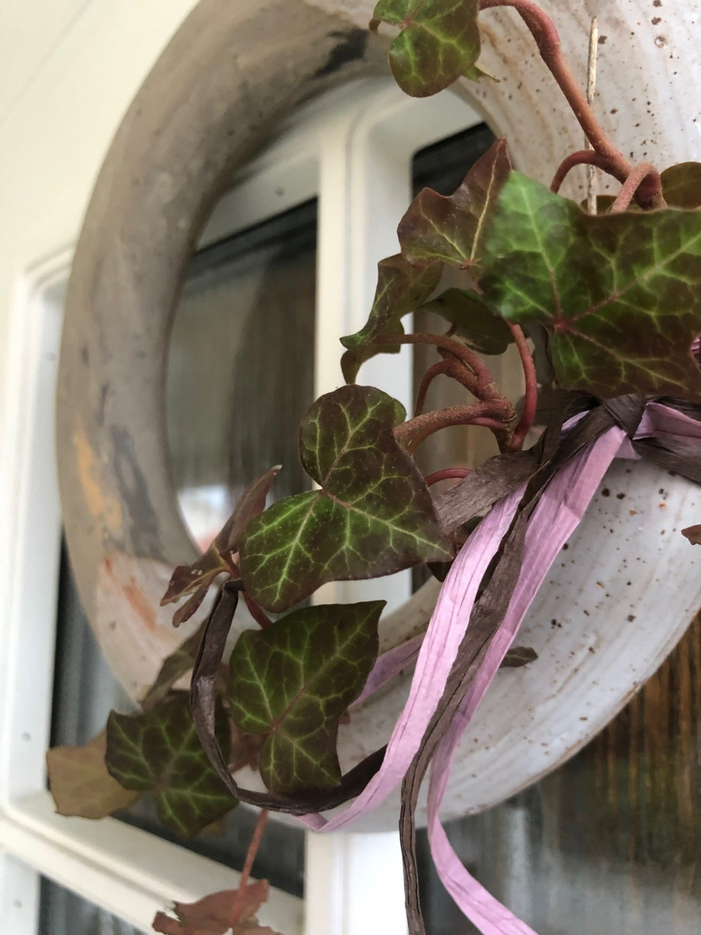 Keramisk dörrkrans i 100% återvunnen stengodslera med mattvit, halvtransparent glasyr. Kan enkelt dekoreras efter säsong, varieras i oändlighet och användas år efter år. B ca 26, H ca 26, D ca 4 cm.
