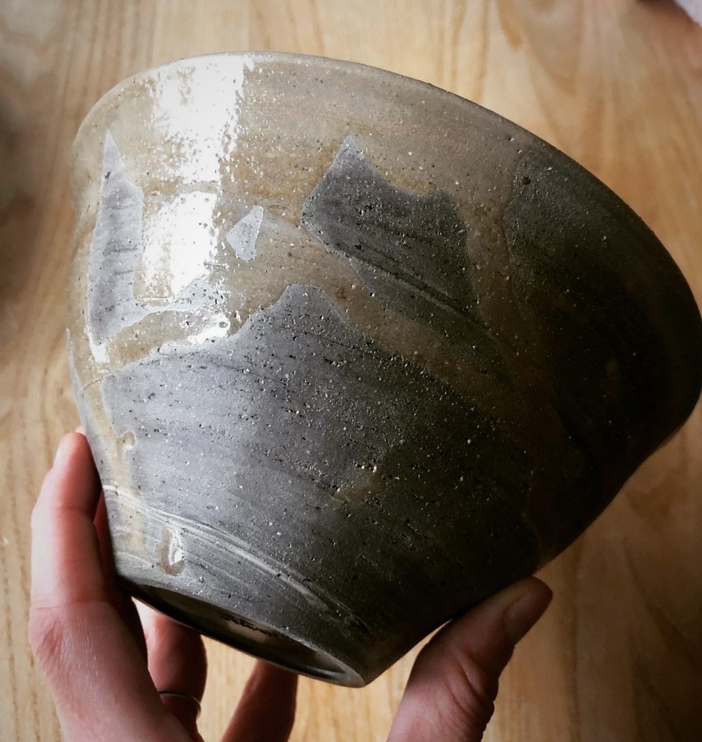 Skål i 100% återvunnen stengodslera, delglaserad i helklar glasyr. Tål micro och maskindisk. B ca 17, H ca 9 cm.