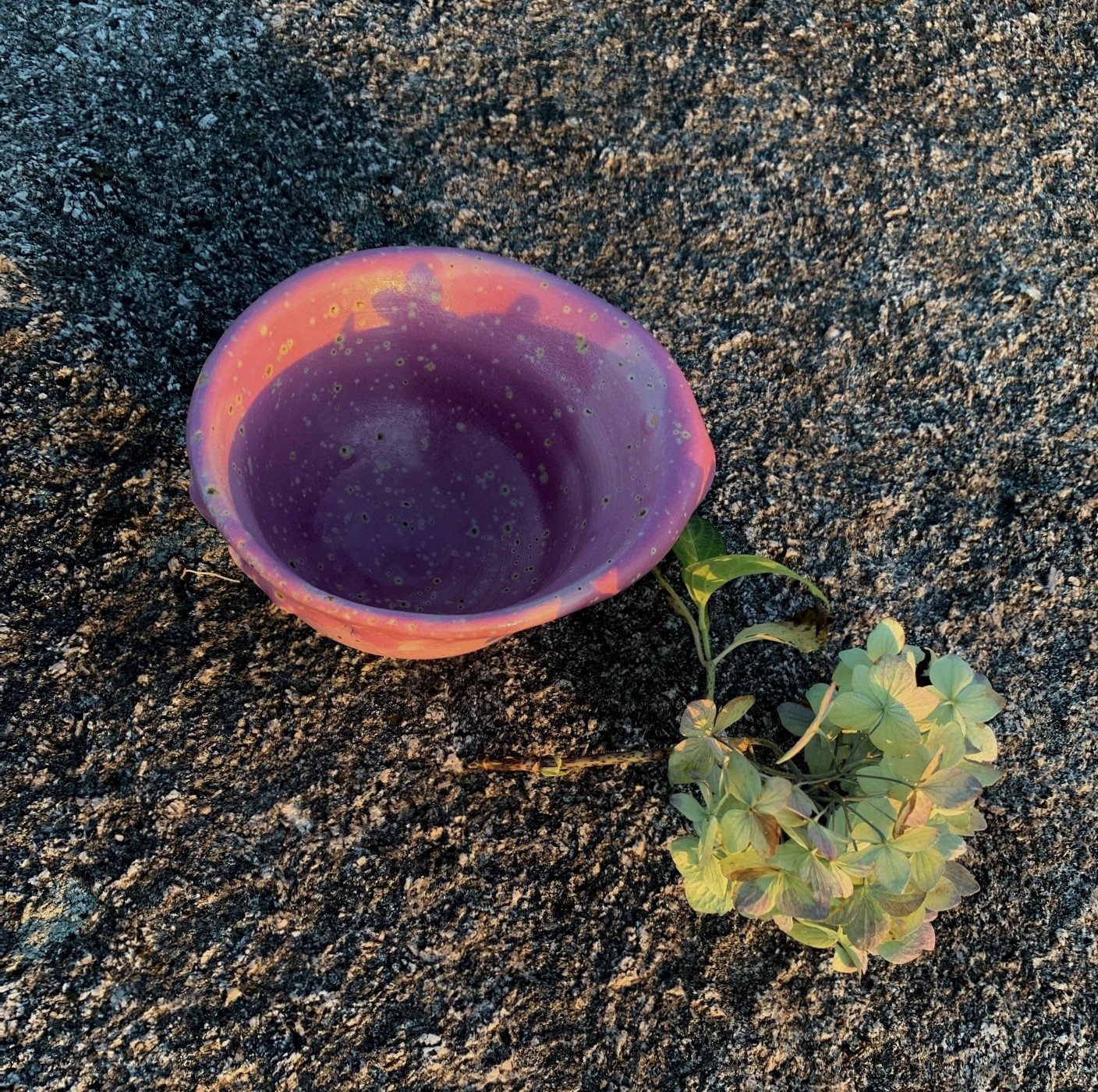 Asymetrisk skål i 100% återvunnen stengodslera. Matt syrenglasyr. Tål micro och maskindisk. B ca 15, H ca 8 cm.